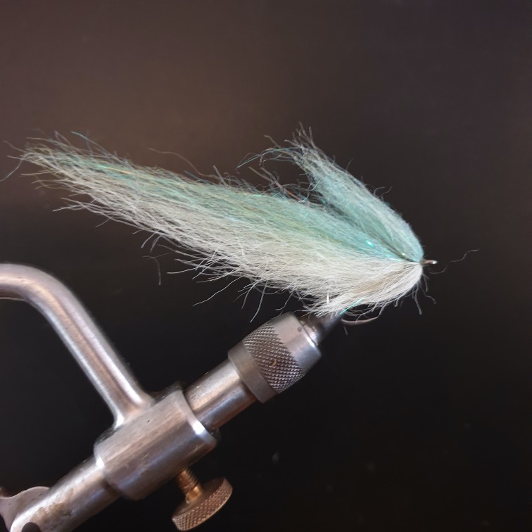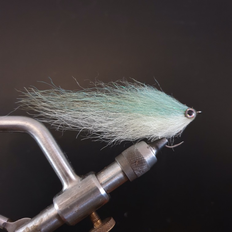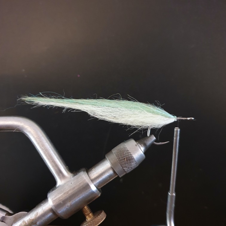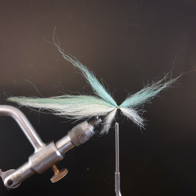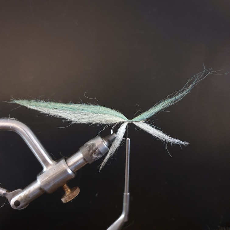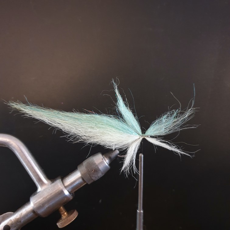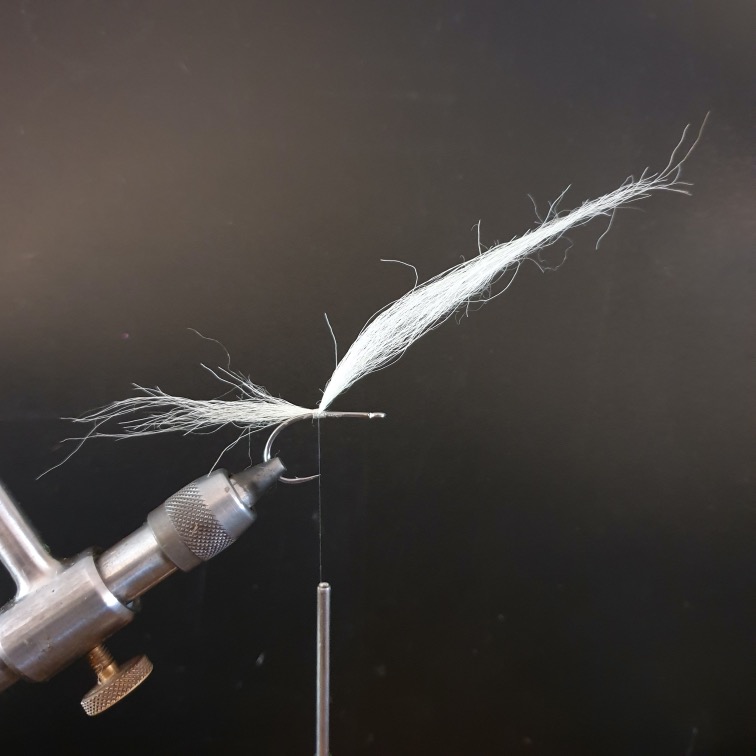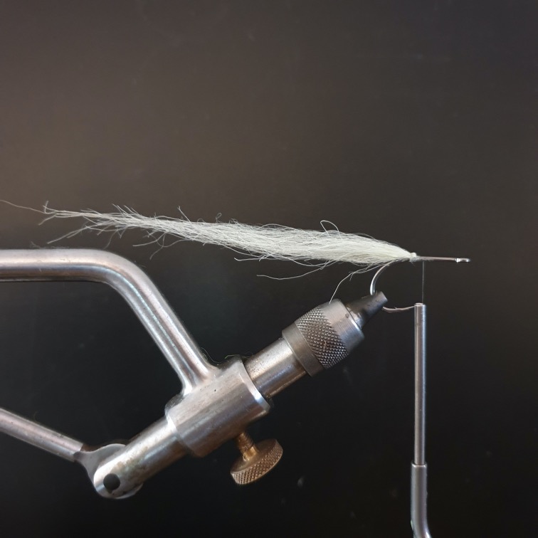 2. Tie in a small bunch of tapered Nayat on top of the hook.